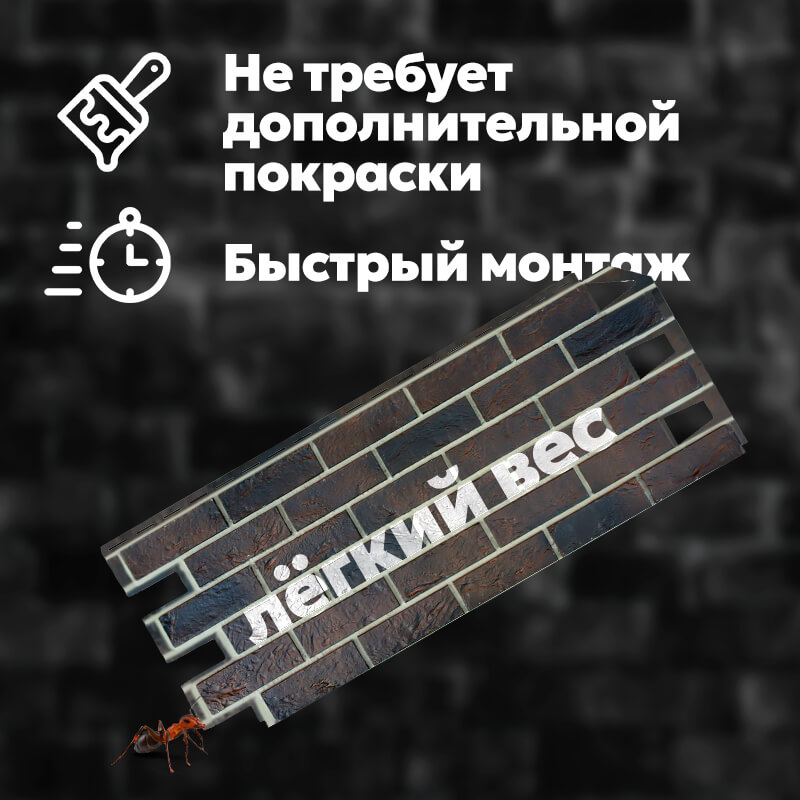 Фасадные панели, Кирпич ЙоркСовременная фасадная система, имитирующая кирпичную кладку. Производится из полимеров на основе полипропилена. Используются для отделки фасадов малоэтажных зданий и облицовки цокольных этажей.Преимущества:100% влагостойкость — фасад не пропускает влагу даже при прямом контакте с водой;устойчивость к морозам — материал не деформируется при перепадах температур;простой монтаж, панели быстро соединяются друг с другом с помощью замковой системы;стойкость к ультрафиолетовому излучению — поверхность не выгорает на солнце;срок службы — более 50 лет;ремонтопригодность — при повреждении одной панели ее легко заменить на новую, не трогая основную кладку.Упаковка и хранение Фасадные панели, Кирпич Йорк следует хранить в условиях, препятствующих попаданию влаги и прямых солнечных лучей, в крытых помещениях с хорошей вентиляцией. Температурный диапазон хранения и транспортировки — от -35°С до +50°С.