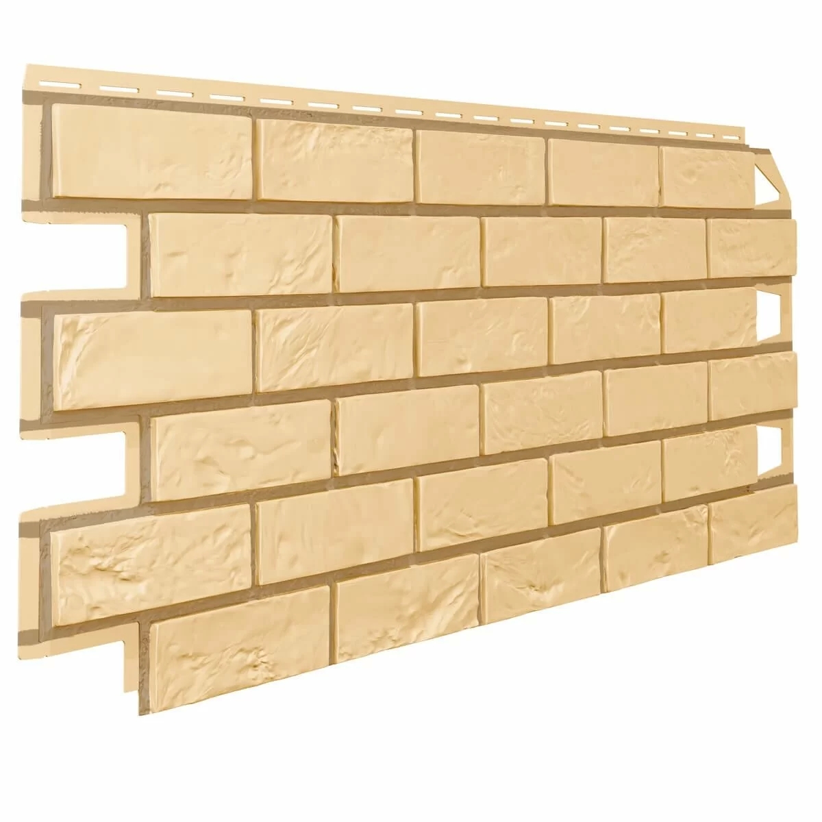 Фасадные панели ОПТИМА, Кирпич, песочный Панели для отделки фасадов жилых и коммерческих зданий, а также цокольных этажей. Производятся на основе полипропилена. Рельефная поверхность с уникальным узором имитирует стену из старинных кирпичей. Подходят для облицовки новых сооружений или реставрации старых. Монтируются на обрешетку.Преимущества:эстетика натуральных материалов;устойчивость к высокой влажности, сезонным перепадам температур;хорошие антивандальные качества;простой уход — грязь и налипшие листья можно смыть струей из шланга;быстрый монтаж — большая площадь панелей и замковое соединение позволяет выполнить отделку в максимально короткие сроки;гарантия 30 лет на отсутствие деформации, вздутия, растрескивания.Упаковка и хранение Фасадные панели ОПТИМА, Кирпич, песочный поставляются в герметичной упаковке по 10 шт. Хранить материал следует в упаковке от производителя на сухом складе в месте, защищенном от прямого попадания солнечных лучей.