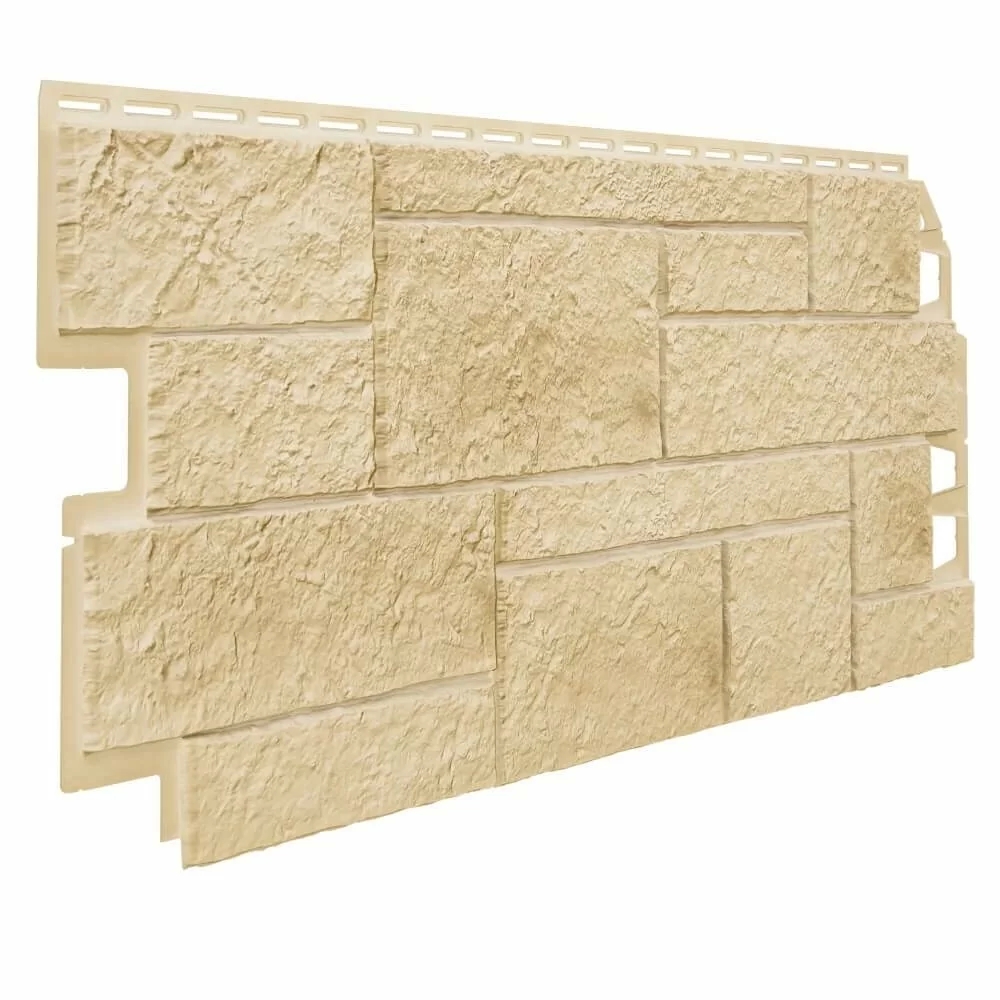 Фасадные панели, Песчаник кремовый Облицовочные фасадные панели для отделки стен и цокольных этажей жилых и коммерческих зданий. Изготавливаются из современных полимеров на основе полипропилена методом литья. Лицевая сторона имитирует натуральную каменную кладку в стиле слоистого песчаника. Преимущества:облегченная структура — панели оказывают минимальную нагрузку на фасад и фундамент;длительный срок службы — производитель гарантирует 50 лет эксплуатации без вздутий и других дефектов;быстрый монтаж — панели оснащены стыковочными замками и собираются по типу конструктора;простой уход — поверхность не нуждается в дополнительной окраске, грязь легко счищается водой;стойкость к атмосферным осадкам и УФ-излучению.Упаковка и хранение Фасадные панели должны храниться в оригинальной упаковке в закрытом помещении в месте, защищенном от прямого попадания солнечных лучей. Поставляются в упаковках по 10 шт.