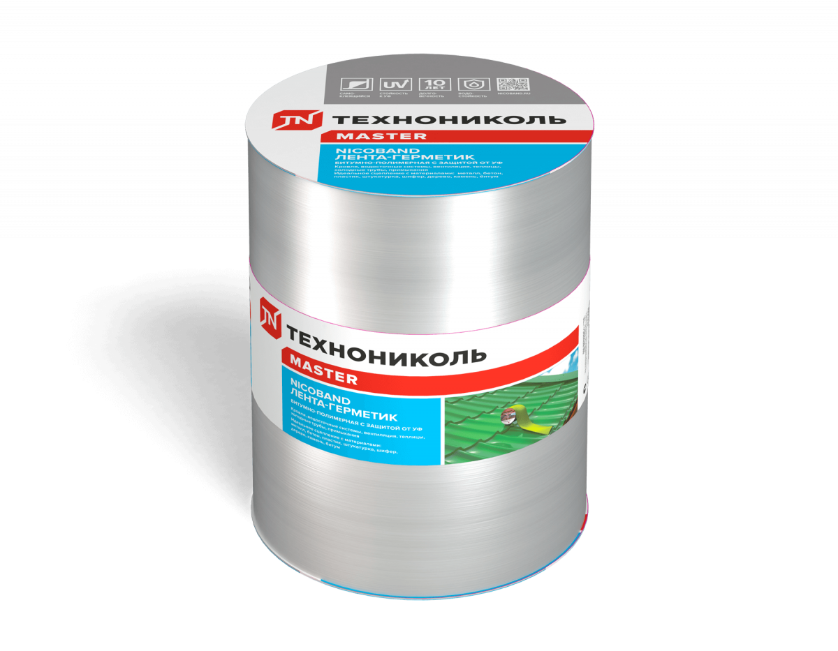 Самоклеящаяся лента NICOBAND серебристого цветаNICOBAND – это трехслойная лента-герметик. Верх изделия – это цветное покрытие, которое выполняет не только декоративную функцию, но и защитную – оно устойчиво к воздействию УФ-лучей. Средний слой ленты представляет собой самоклеящийся герметик. А нижний – защитная пленка: слой легко снимается перед началом работы. Самоклеящаяся лента Никобенд имеет серебристый цвет. Ширина материала составляет 20 см, а длина – 10 м.НазначениеЛента марки NICOBAND подходит для работы с любыми основаниями: материал совместим со штукатуркой, стеклом, бетоном, пластиком, деревом и прочими основаниями. Самоклеющийся материал используют для ремонта кровли (швы и трещины), а также изоляции систем водостока.Преимущества:стойкость к воздействию солнечных лучей;продолжительный срок службы;универсальность (широкая сфера использования);простота проведения работ.Упаковка и хранениеМатериал следует хранить в заводской упаковке, оберегая от попадания влаги и солнечных лучей.Оформите покупку сам