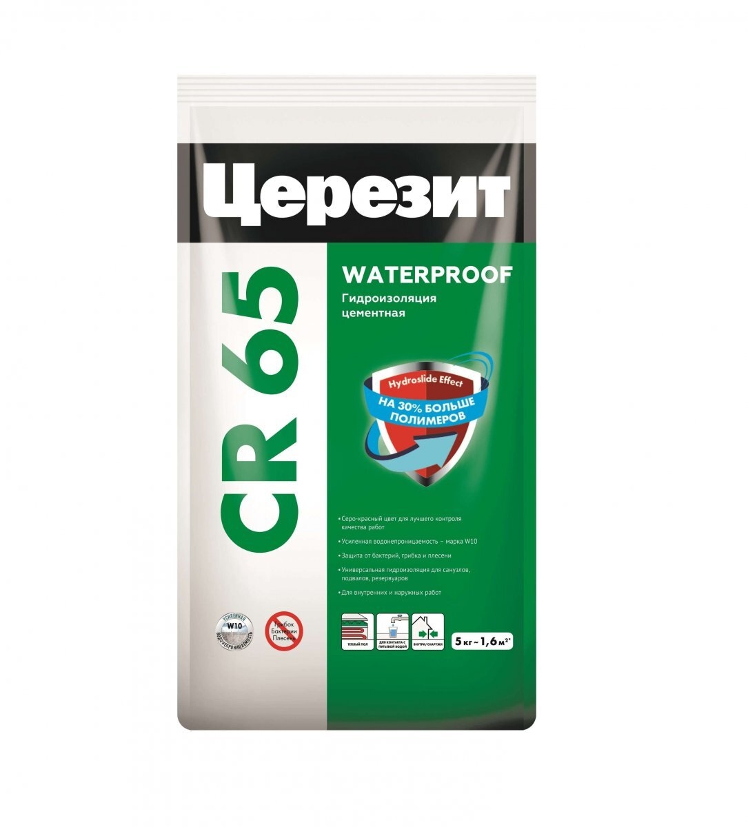 Масса для устройства жестких гидроизоляционных покрытий Церезит CR 65 20 кгЦерезит T CR 65 – сухая цементная смесь, содержащая минеральные заполнители и модификаторы. Масса предназначена для устройства гидроизоляции водонепроницаемых покрытий.Смесь применяется для гидроизоляции небольших ванн, бассейнов, душевых кабин, туалетов, кухонь и др под плиточную облицовку. Подходит для подземных, гидротехнических и очистных сооружений. Используется для заполнения пустот и углублений.Преимущества:пригодна как для внешних, так и для внутренних работ;негорючий материал;экологически безопасный состав;высокие адгезионные свойства к бетонным основаниям;паропроницаема;ручной способ нанесения (кисть или шпатель);температура эксплуатации от -50° С до +70° С;устойчива к химическим воздействиям.Упаковка и хранение В качестве упаковки используются многослойные бумажные или фольгированные мешки по 20 кг. Хранить массу рекомендуется в сухих условиях на поддоне, не нарушая заводскую упаковку.